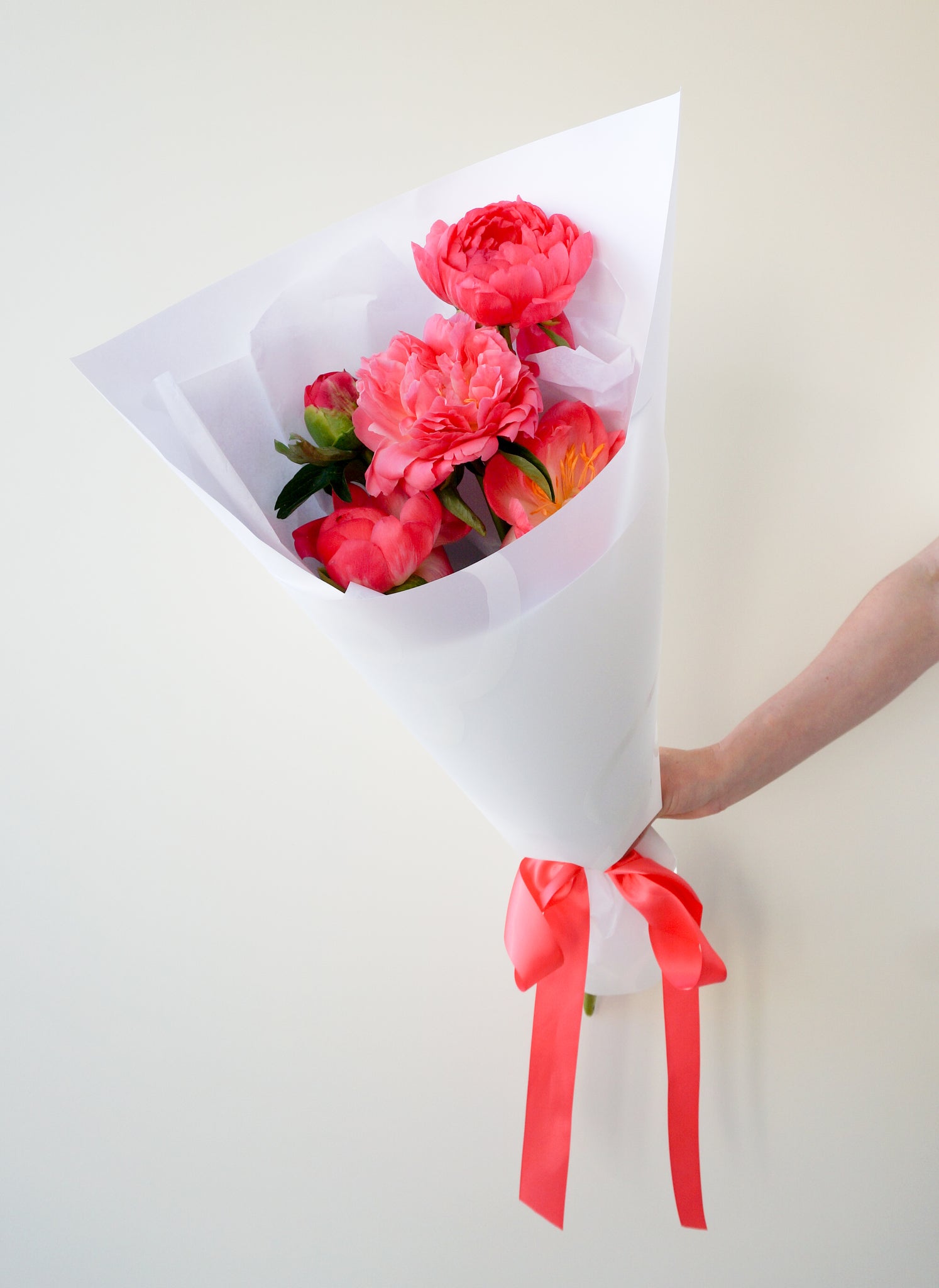 Experience a current seasonal selection in abundance. Why not fully embrace your preferred flower variety to craft a blooming showstopper? Currently, the seasonal offering for same day delivery is Peonies.